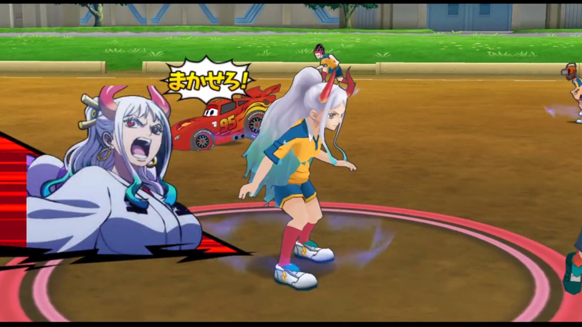 Inazuma Eleven GO Crossover está basado en Inazuma Eleven Go Strikers 2013 de Wii. Este juego te permite jugar con personajes de varios animes, programas de televisión, videojuegos y mucho más.